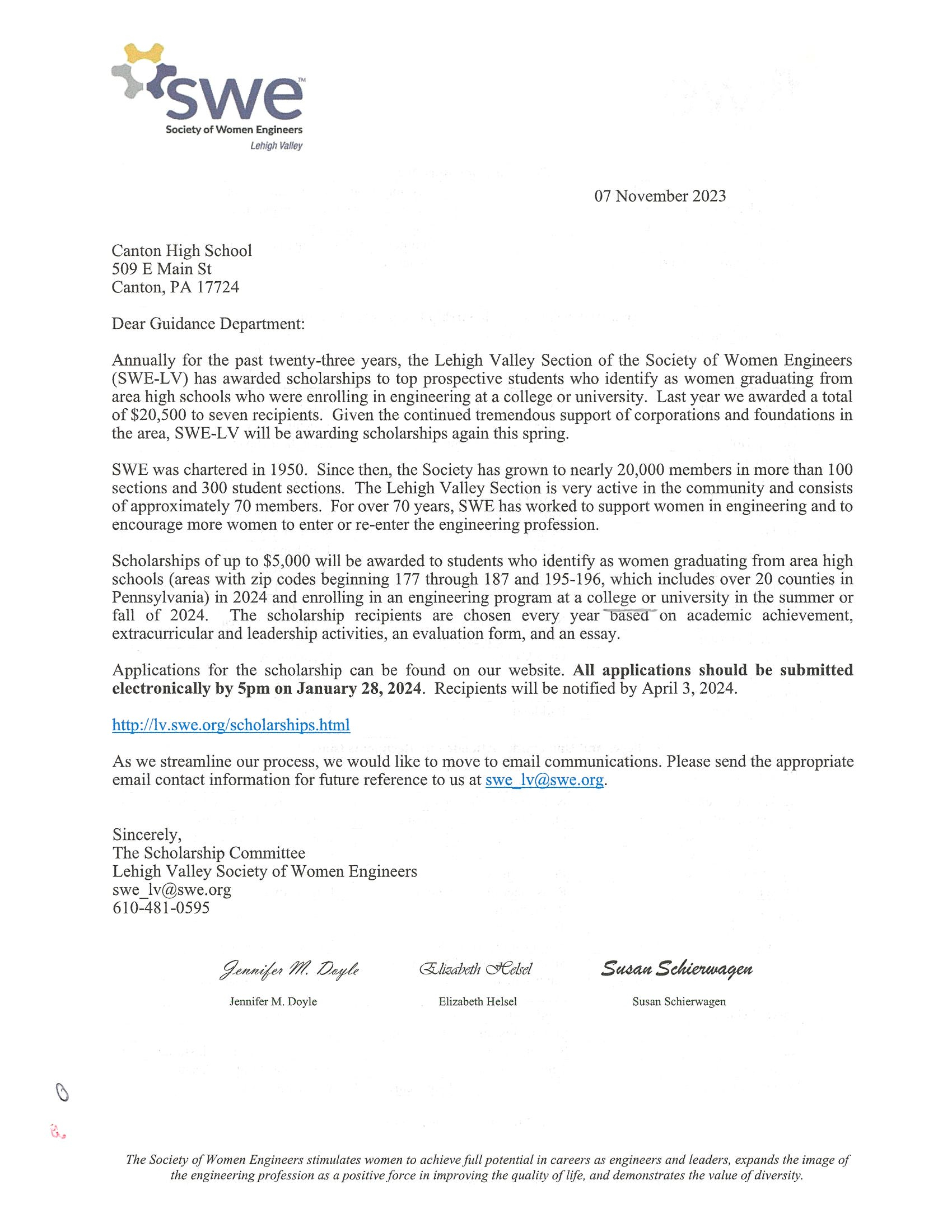 *11.3.2025 SWE Society of Women Engineers (Deadline February 1, 2026) http://www.canton.k12.pa.us/wp-content/uploads/2025/11/SWE-Society-of-Women-Engineers.pdf